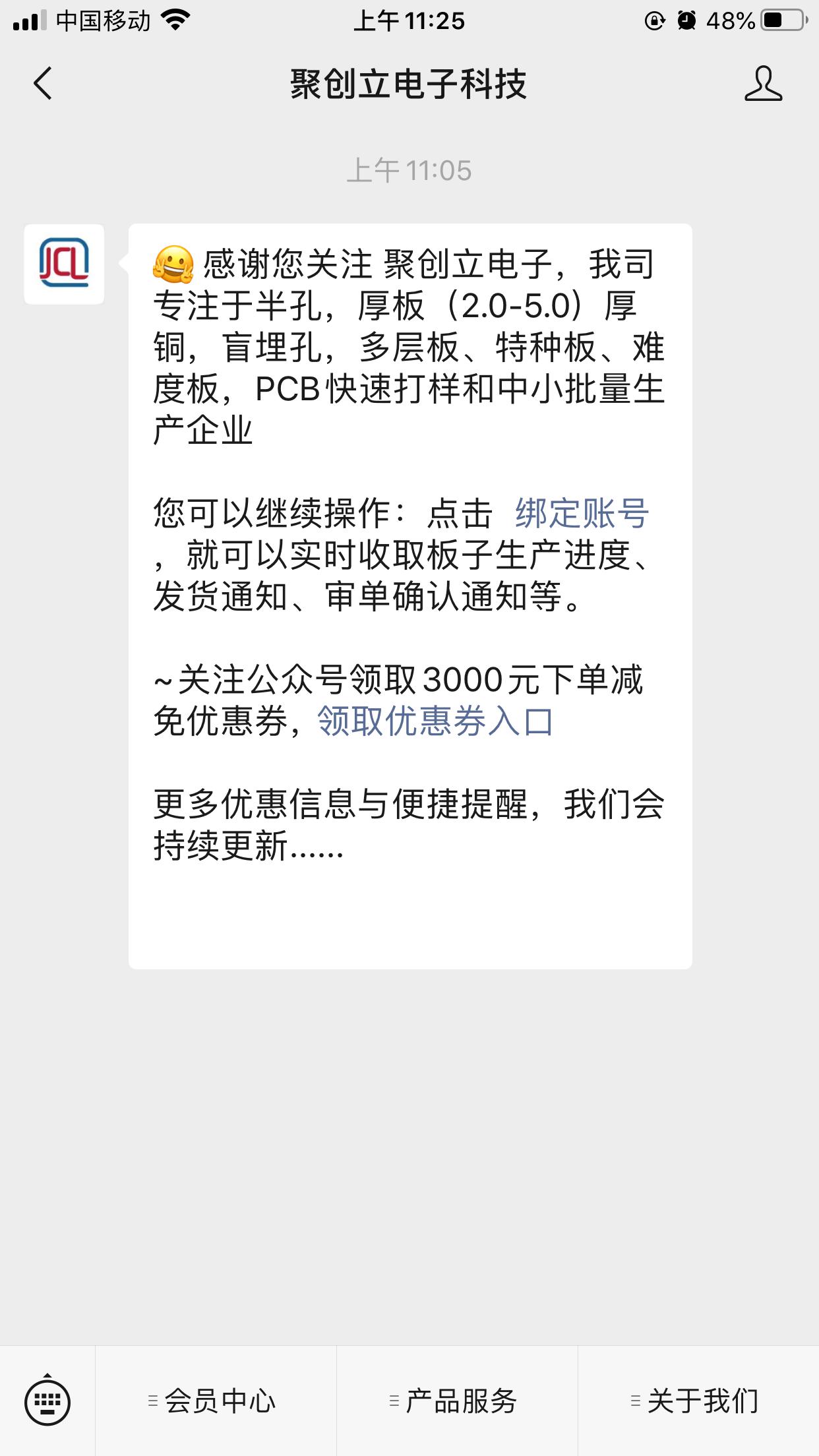 1、 新客戶注冊成功后,必須關(guān)注 “聚創(chuàng)立電子科技”微信公眾號,綁定客戶賬戶后才能領(lǐng)券